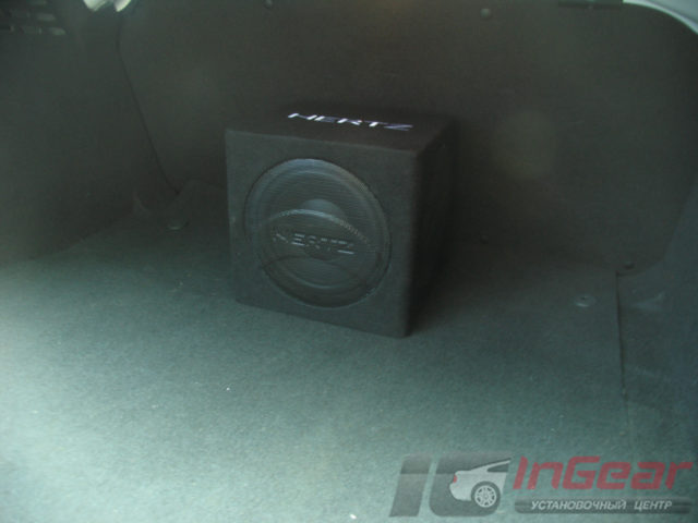 Установили активный корпусный сабвуфер Hertz в багажник Audi A4. Это корпусный сабвуфер, в корпусе которого размещен усилитель. Все, что нужно, чтобы добавить в звучание баса — подключить его к магнитоле. Узнать больше об автозвуке можно в нашей статье, а ознакомиться с ассортиментом товаров по автозвуку — тут.