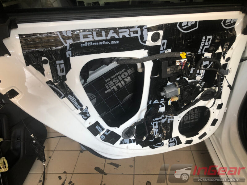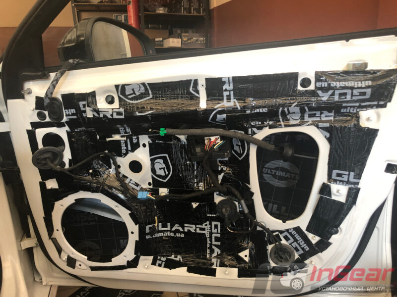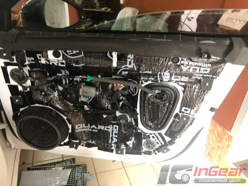 Владелец авто приехал с запросом, провести работы по устранению скрипов в дверях, но когда человек увидел двери в разобранном виде, было принято решение делать полноценную шумоизоляцию дверей в варианте «Премиум».