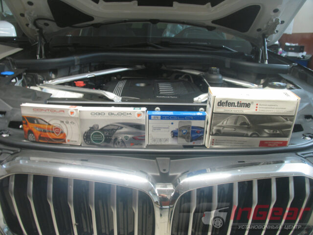 Авто защитили установкой иммобилайзера Игла 271, блоком управления капота Contour, замком капота Defen.time, перепиновали OBD-разъем и защитили систему бесключевого доступа.