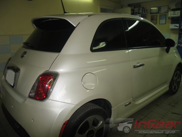 Полностью затонировали Fiat 500. Клиент выбрал пленку светопропускаемостью в 5% для боковых и заднего стекла и 20% для лобового. Такой комплект является очень темным, салон не просматривается, но не всем водителям будет комфортно в темное время суток. Какую светопропускаемость выбрать? Ответ на этим и другие часто задаваемые вопросы можно получить на этой странице.
