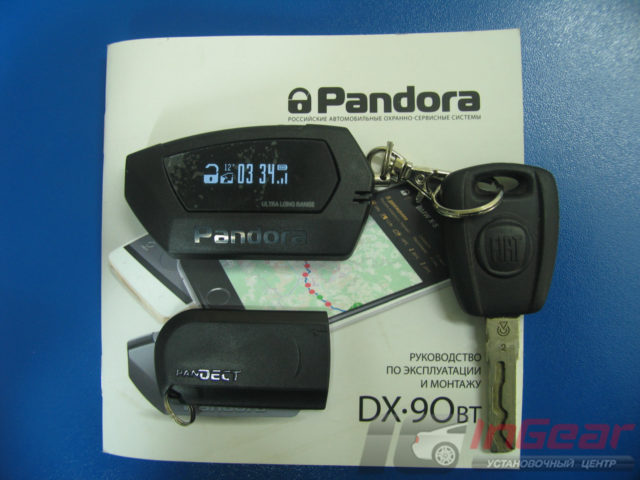 Установили Pandora DX-90BT в Fiat Punto. Эта сигнализация комплектуется современным брелком и беспроводной меткой, которая работает по Bluetooth протоколу. Также, в комплекте есть беспроводное Bluetooth реле, которое значительно увеличивает защищенность автомобиля от угона. Узнать больше о разных сигнализациях и их отличительных особенностях можно в нашей статье.