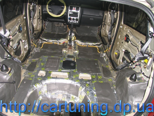 В автомобиле проведен комплекс работ по шумо-виброизоляции салона и акустической подготовке.
