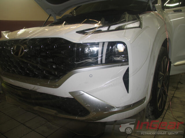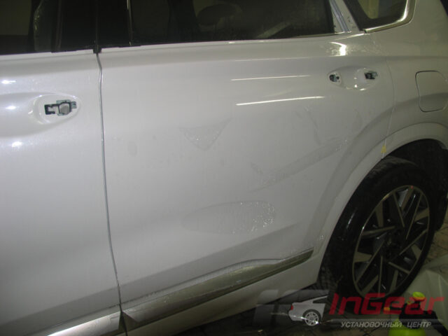 Этот автомобиль приехал к нам прямиком из автосалона на комплексную доработку. Прежде всего, клиент выбрал полную защиту кузова антигравийной пленкой. Конечно, процедура не бюджетная, но она позволяет сохранить кузов в идеальном состоянии долгие годы. За все время нашей работы не было не одного случая, чтобы клиент после полной оклейки пожалел о этом. А вот случаев, когда какой-то элемент остался без защиты и пострадал — достаточно.