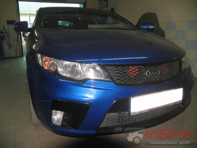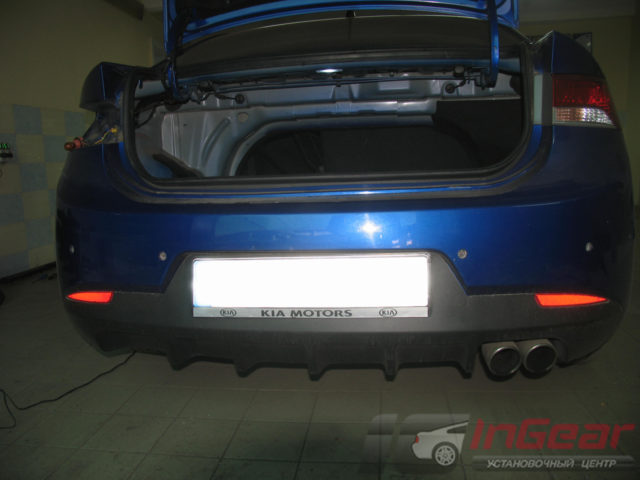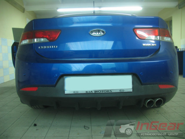 Установили парктроник на 4 датчика (задний) в Kia Cerato Koup. Экран закрепили на зеркале заднего вида. Почитать больше о системах парковки можно тут, а ознакомиться с ассортиментом парктроников, которые мы предлагаем — здесь.