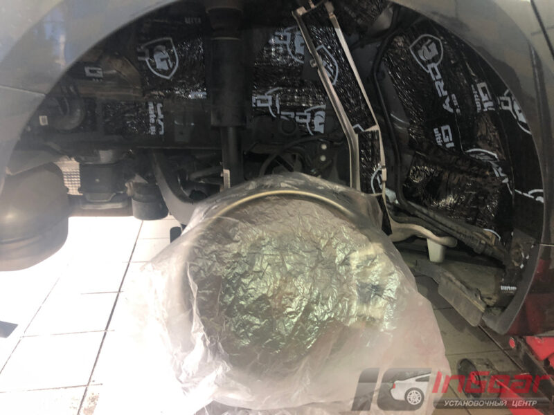 Владелец авто, после поклейки авто антигравийной пленкой кузова, вернулся к нам через пару недель, уже для проведения шумоизоляции дверей в варианте «Премиум и арок. Все работы заняли один день.