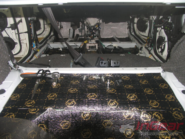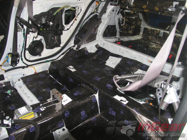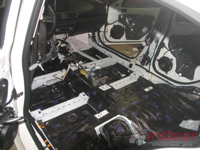 Выполнили комплекс работ по полной шумоизоляции Mazda 3 по максимальному варианту «Премиум», который затрагивает обработку всех частей кузова изнутри и колесные арки снаружи. Наша уникальная комбинация двенадцати материалов дает лучший результат. Сколько стоит такая шумоизоляция? Ответ есть здесь.