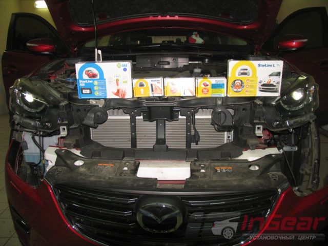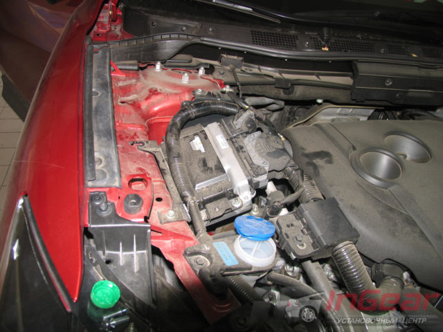 Автомобиль комплексно защищен от угона с применением авторских элементов защиты. Установлена сигнализация Starline A66 с GSM управлением и GPS отслеживанием. Для защиты подкапотного пространства установлен замок капота Starline L11+. Также, под капотом размещено радиореле блокировки, а блок управления двигателем защищен от отключения разъема и снятия. OBD-II разъем перепинован для защиты от электронных способов взлома через штатную диагностическую шину. Подробно почитать о сигнализациях можно здесь, а о механических средствах защиты — тут.
