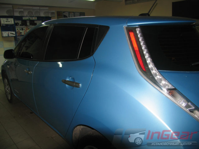 Затонировали передние боковые стекла пленкой LLumar ATR-15, а задние LLumar ATR-5. Таким образом, передние стекла более светлые, а задние — более темные. Это не очень видно со стороны (по крайней мере, в глаза не бросается) и позволяет лучше затемнить салон и снизить его нагрев летом. Кстати, атермальная пленка позволяет еще эффективнее чем самая темная, но обычная пленка, снизить нагрев салона летом. Почитать о ней можно здесь.