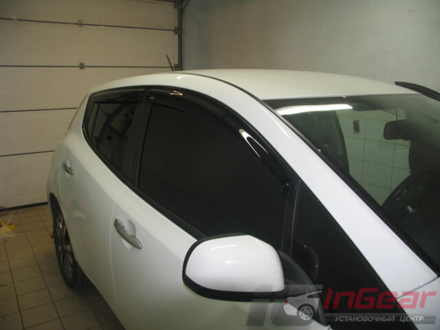 Затонировали все стекла (кроме лобового) Nissan Leaf самой популярной пленкой — LLumar ATR-15, которая пропускает 18% солнечного света и на 48% сдерживает тепловую энергию солнца. Какую светопропускаемость выбрать? Ответили тут.