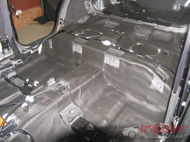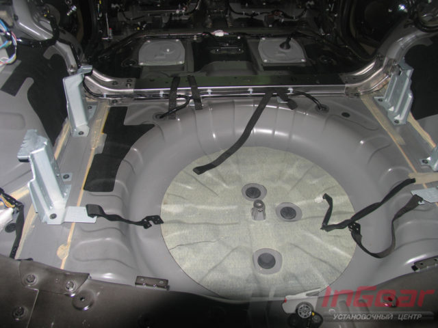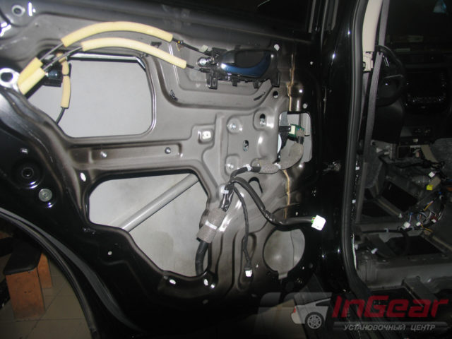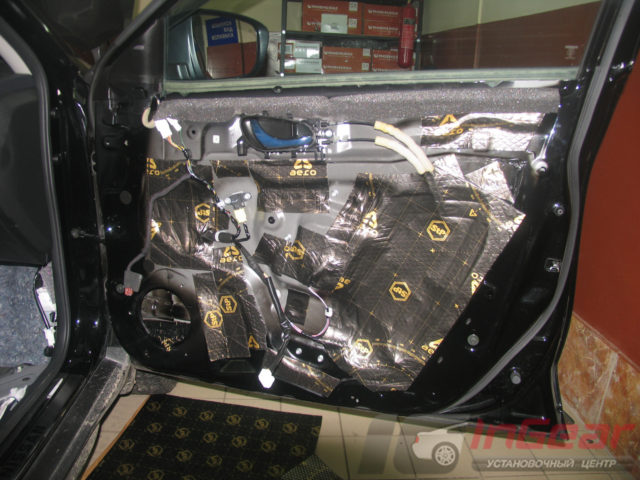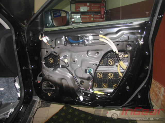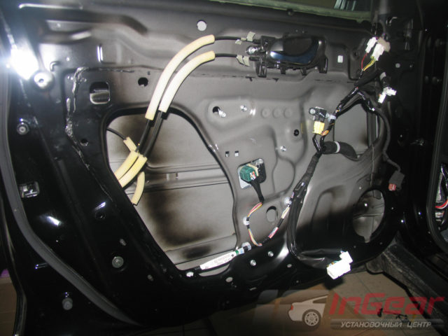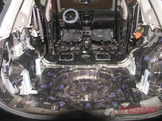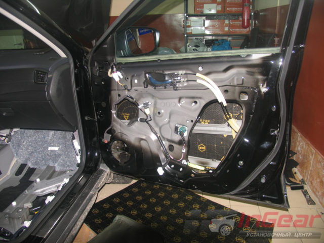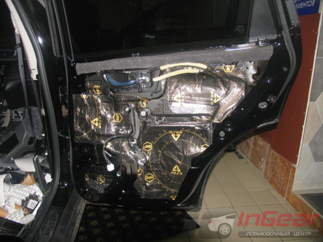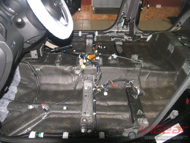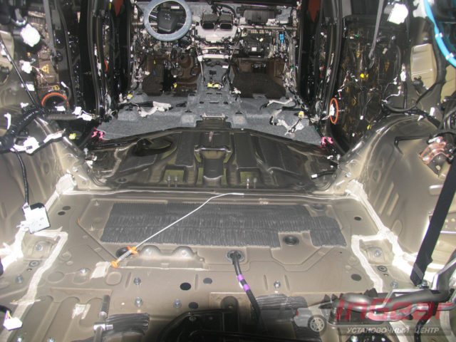 Выполнили полную шумоизоляцию по варианту «Премиум» (без потолка, потому что ,в автомобиле панорамная крыша). Установили сигнализацию Straline S96 с автозапуском и дополнительно реализовали блокировку штатного радиоканала в отсутствии метки Starline. Установили пакет антигравийной защиты «Стандарт ++».