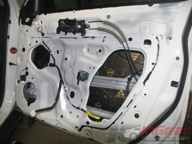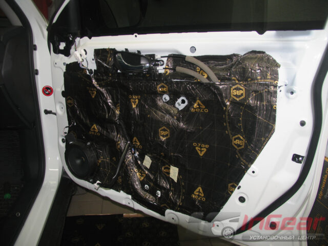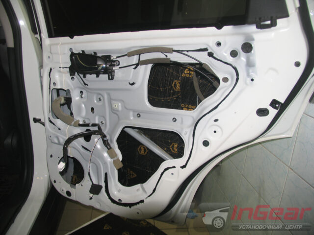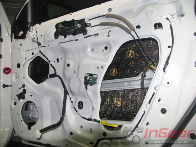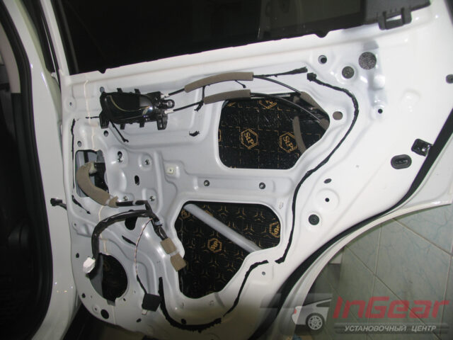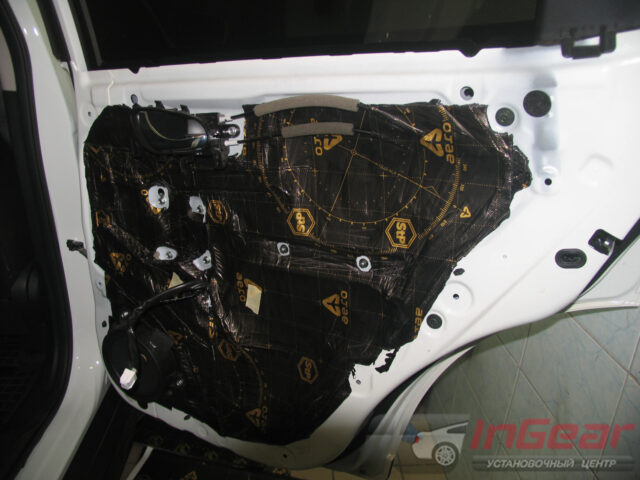 Затонировали передние стекла самой популярной пленкой LLumar ATR-15, а задние — более светлой (поверх заводской тонировки) ATR-20. Так как процесс тонировки сопряжен с разборкой дверей, попутно выполнили шумоизоляцию дверей по максимальному варианту «Премиум».
