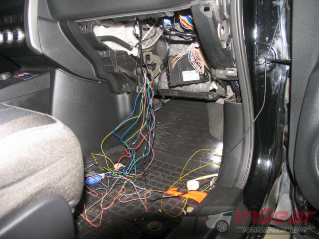 Установлена сигнализация Starline A63, в противотуманные фары установлен комплект ксенона. Для удобства при парковка установлена камера заднего вида.