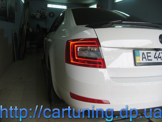 В данном автомобиле была проведена не просто установка светодиодных штатных фонарей, но также и их адаптация.  Благодаря адаптации установленных фонарей, на щитке приборов автомобиля не появляются ошибки, несмотря на то, что вместо штатных ламповых фонарей установлены светодиодные.