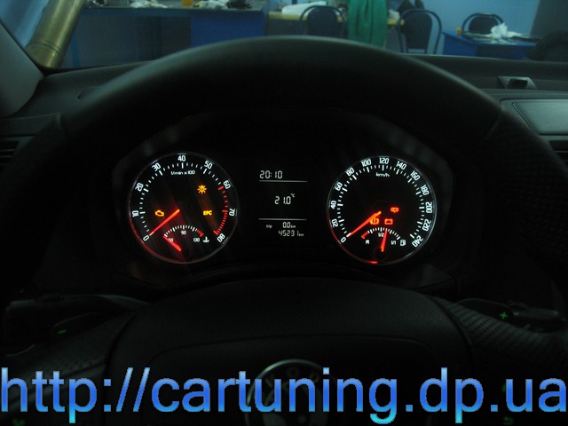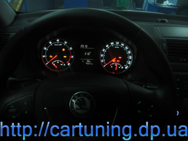 В данном авто была выполнена полная перепайка подсветки щитка – белые светодиоды были заменены на более мощные, а стрелки – перепаяны из белого цвета в красный. Таким образом, удалось добиться большей контрастности и эффектности штатного щитка. Также, по желанию клиента, некоторые кнопки в салоне были акцентированы яркой белой подсветкой.