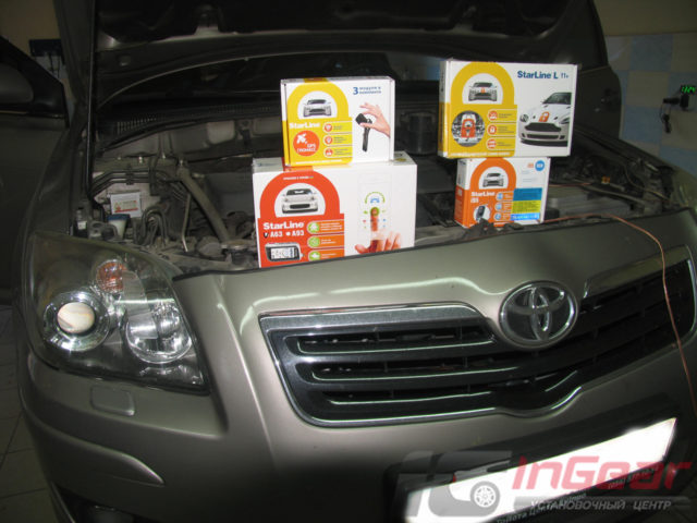 Комплексно защитили от угона Toyota Avensis. Центром системы является сигнализация Starline A63, к которой подключены опциональные модули GSM и GPS. Благодаря GSM-модулю, системой можно управлять и получать уведомления с любого места, где есть покрытие сотовой сети. GPS-модуль дает возможность в любой момент узнать точное местонахождение автомобиля. Иммобилайзер Starline i95 является классическим иммобилайзером — он производит авторизацию владельца с помощью меток, которые он носит с собой. Электромеханический замок капота управляется от иммобилайзера — он открывается только в случае обнаружения метки в радиусе действия. Подробно почитать о сигнализациях и иммобилайзерах можно тут, а про замки капота и другие механические средства — здесь.