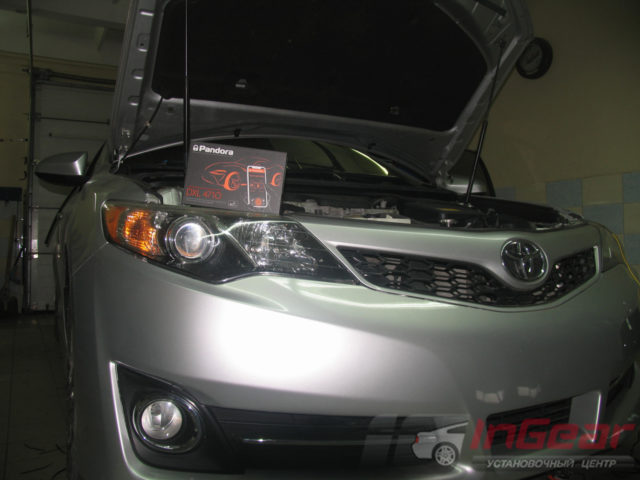 Защитили американскую Camry от угона с помощью GSM сигнализации Pandora DXL 4710 с подкапотным модулем RHM-03BТ, который управляет модельным замком капота. Дополнительно реализовали блокировку штатного радиоканала при отсутствии радиометки. Затонировали стекла пленкой LLumar со светопропускаемостью 15%.