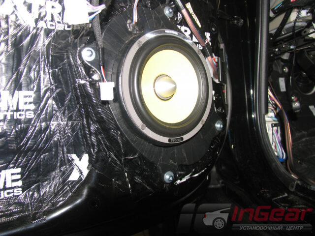 Владелец захотел собрать качественную процессорную аудиосистему, с красивым звучанием. Это естественно потянуло за собой полную шумоизоляцию авто в варианте «Премиум». Паралельно установили охранный комплекс с GSM сигнализацией, с радиореле, замками капота, сейфами ЭБУ, защитой бесключевого доступа, закладным GPS маяком. И в финале человек изъявил желание установить дотяжки дверей.