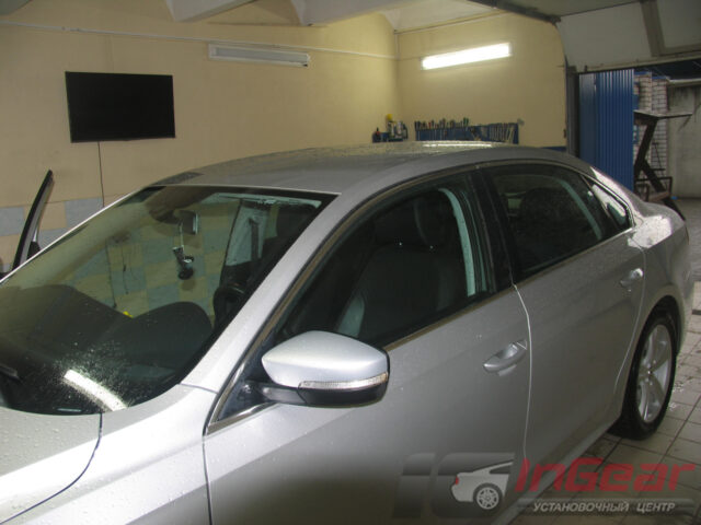 Выполнили работы по тонировке стекол в Passat B7 USA. Лобовое стекло затонировали пленкой LLumar ATR-35, а остальные — ATR-15. Можно ли тонировать лобовое стекло, если на нем есть сколы? Почитайте тут.