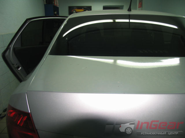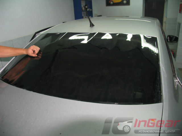 Автомобиль был затонирован метализированной пленкой премиум класса ТМ LLumar (производство США). Коэффициент светопропускаемости — 15%. Подробно почитать о тонировке можно тут.
