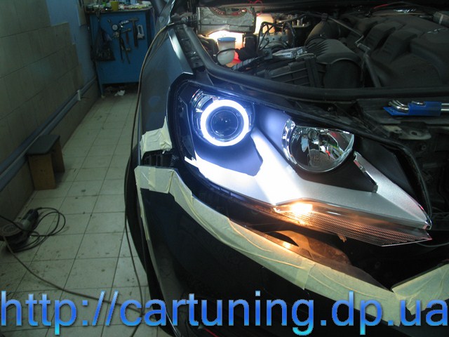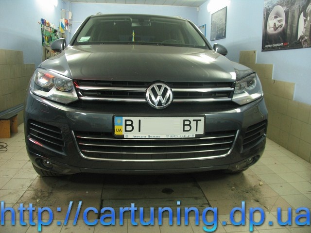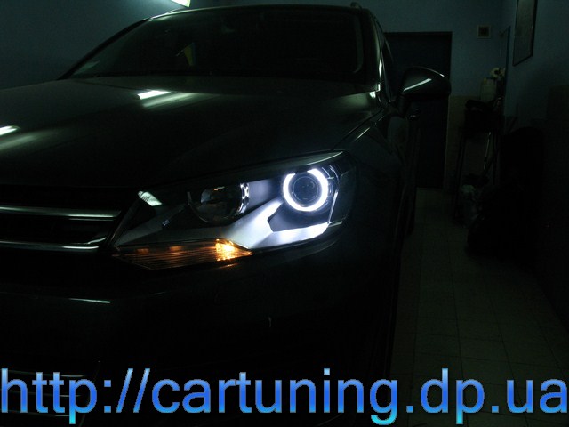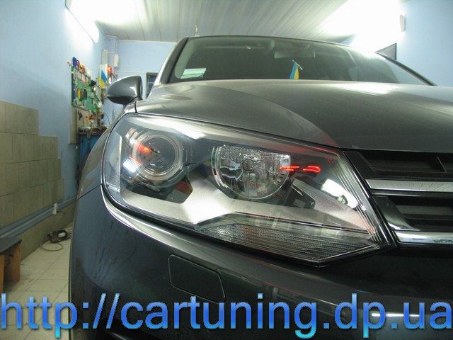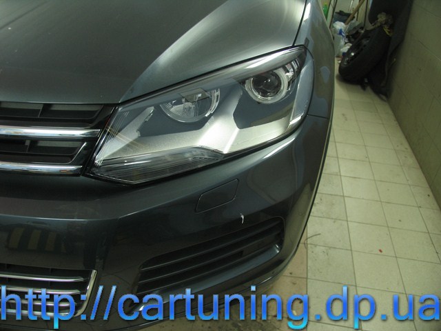 Предлагаем вам оценить работу Автомастерской InGear в Днепропетровске – модернизация передней оптики в автомобиле Volkswagen Touareg.