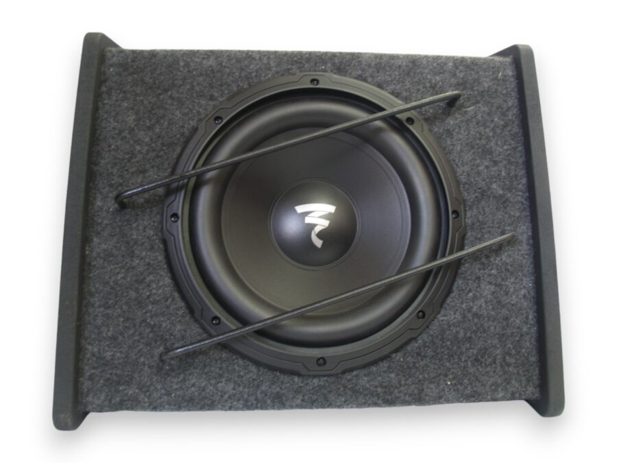 Сабвуфер Focal среднего уровня в корпусе из клееной фанеры, обшитом карпетом.